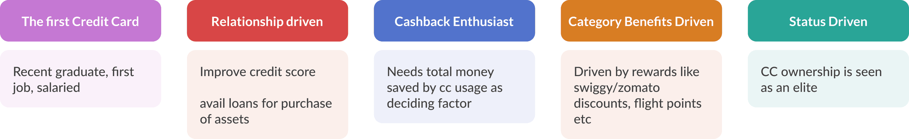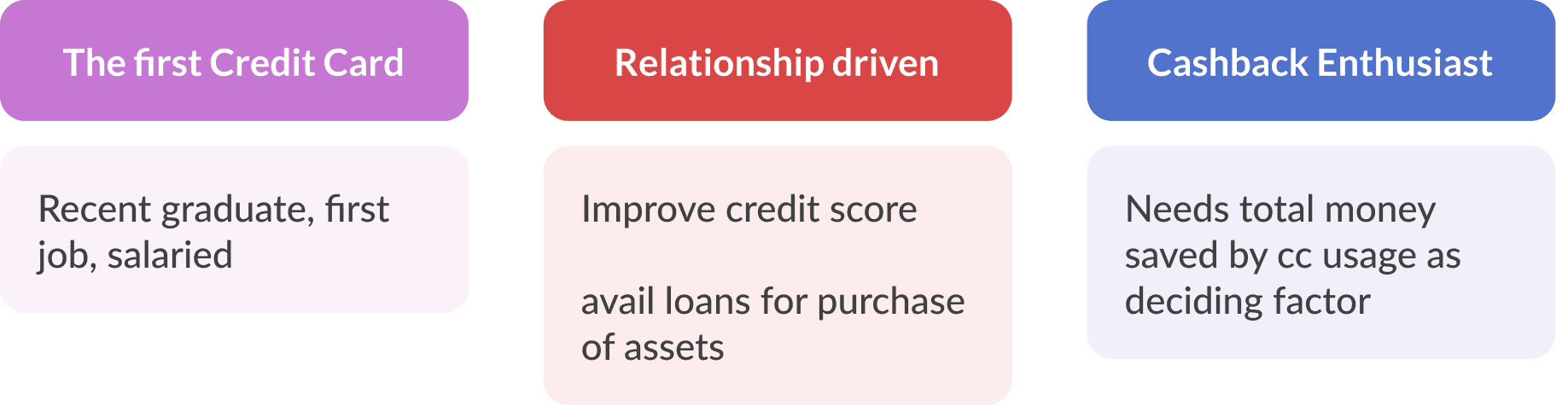 An analysis into customer lifecycles and the kinds of cards they would opt for at different stages was done to arrive at the following user archetypes.