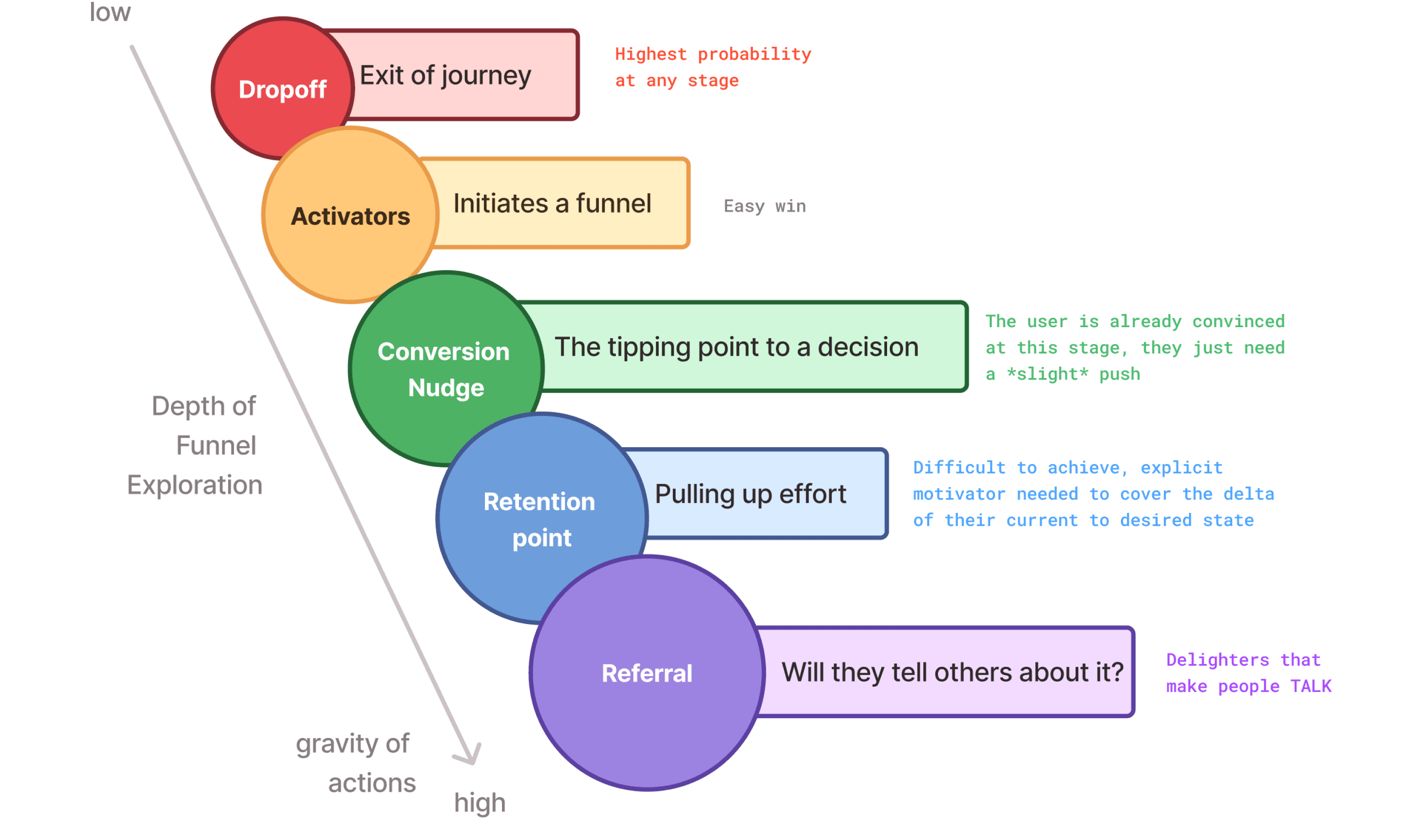 Certain interactions were identified to understand the role of every touchpoint. Overlaying these on the journey helped identify what works/ what doesn't and why. As highlighted below, these five interactions can all be extracted into core drivers to understand how every micro-decision, feature addition and enhancement fits into the acquisition ecosystem.