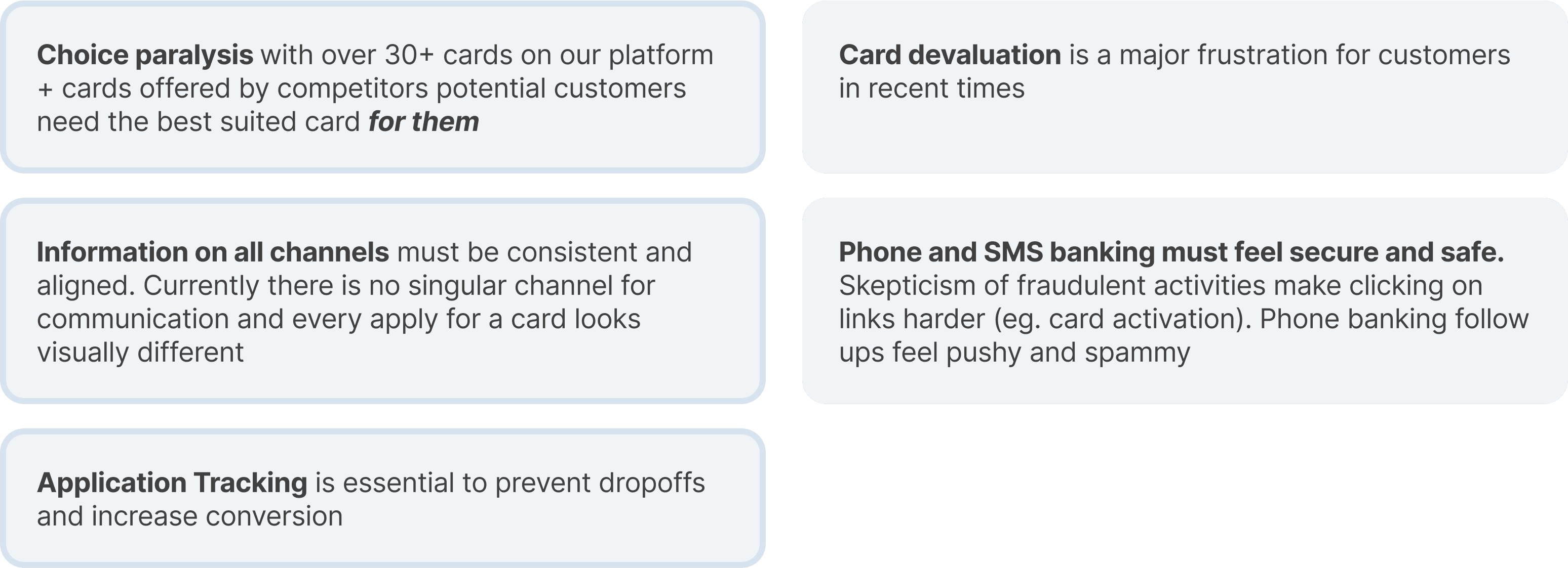 Credit cards is a critical product within the banking ecosystem. It is a push product- making the current landscape feel quite sales heavy. With every bank and everyday app promoting a card, there seems to be little decision autonomy left in the hands of potential customers.